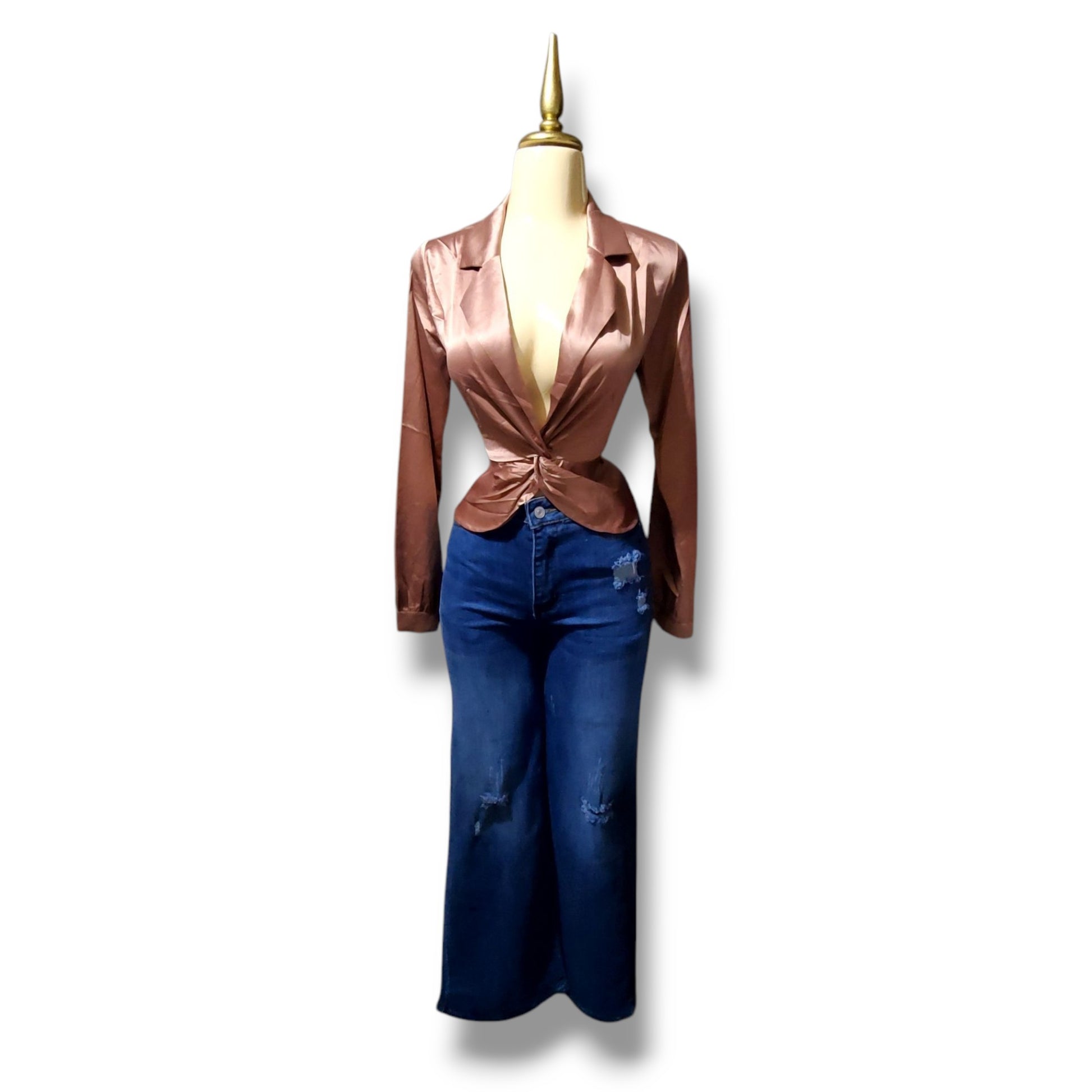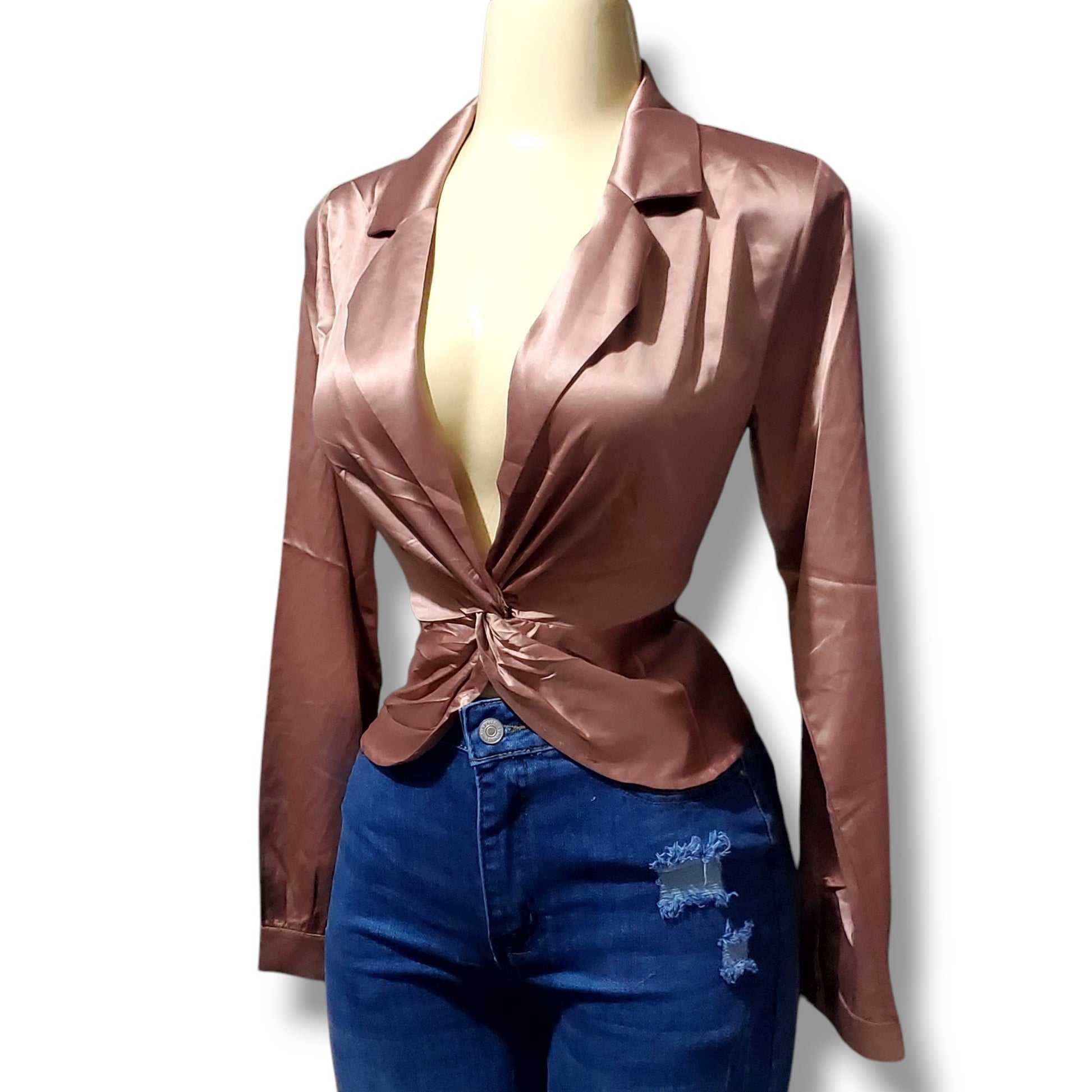 Blusa de mangas largas con escote pronunciado y nudo en abdomen