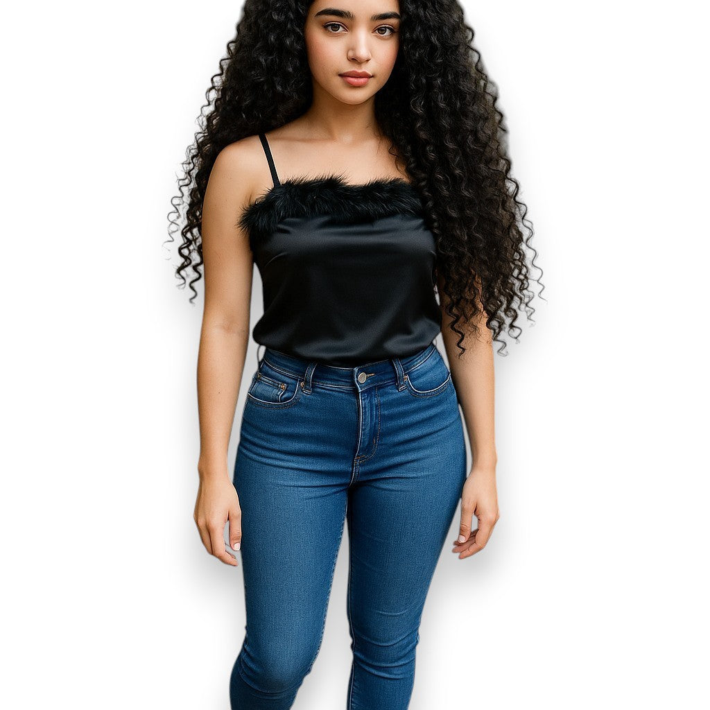 Blusa de tirantes finos, confeccionada en tejido suave y ligero, ideal para ocasiones especiales, salidas nocturnas o looks elegantes.