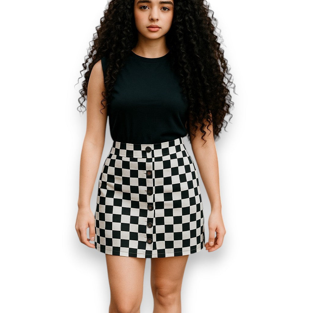 Falda a cuadros confeccionada en tela delgada y ligera, ideal para combinar con cualquier temporada.