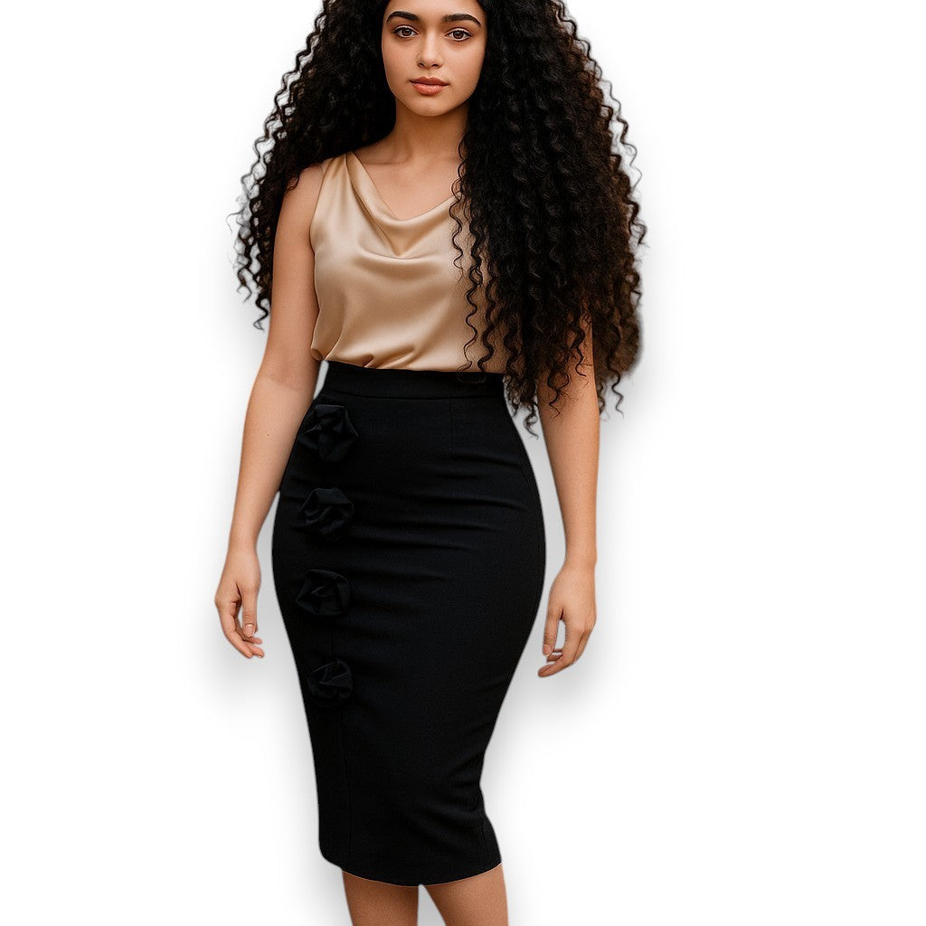 Falda tipo lápiz, confeccionada en tejido cómodo y ligero, ideal para looks casuales, urbanos o semi-formales.