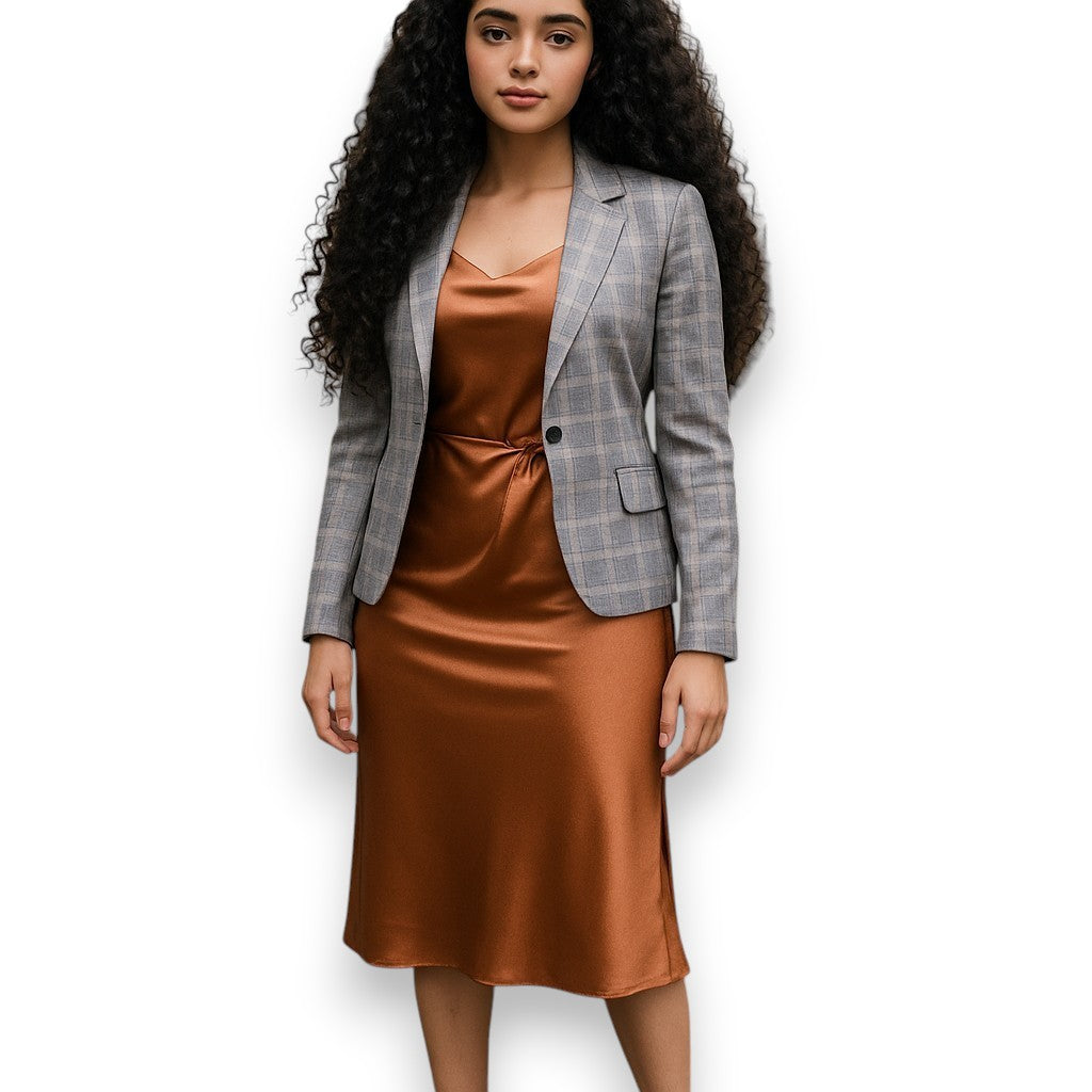 Vestido tipo slip dress con tirantes finos, confeccionado en tejido ligero y fluido, que se ajusta suavemente al cuerpo para un look elegante y cómodo.